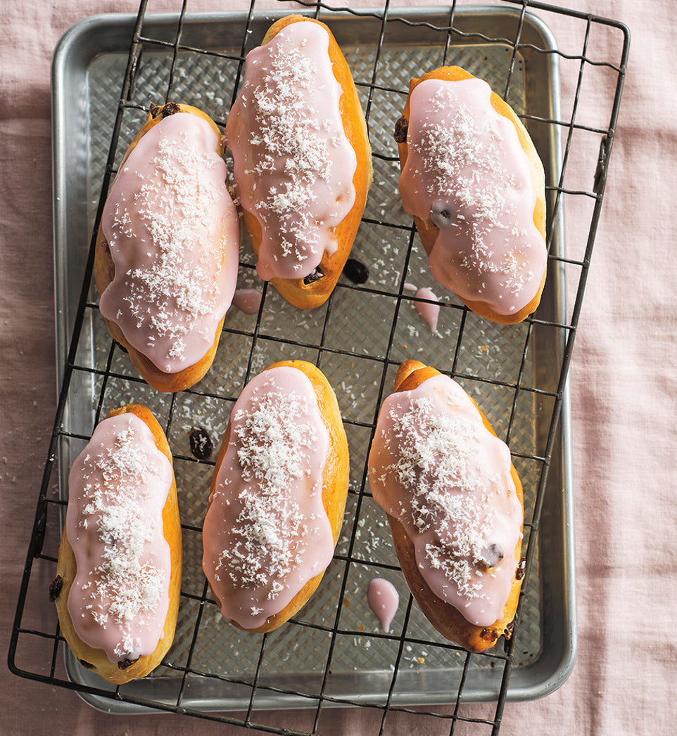 - Spread the coconut on a tray or plate. Rest a cake portion on a fork, dip into the chocolate icing and then and spoon the icing over the top and sides to completely coat. Allow any extra icing to drip off. Roll the cake in the coconut to coat evenly. Place on a wire rack. Repeat with the remaining cake portions, icing and coconut.