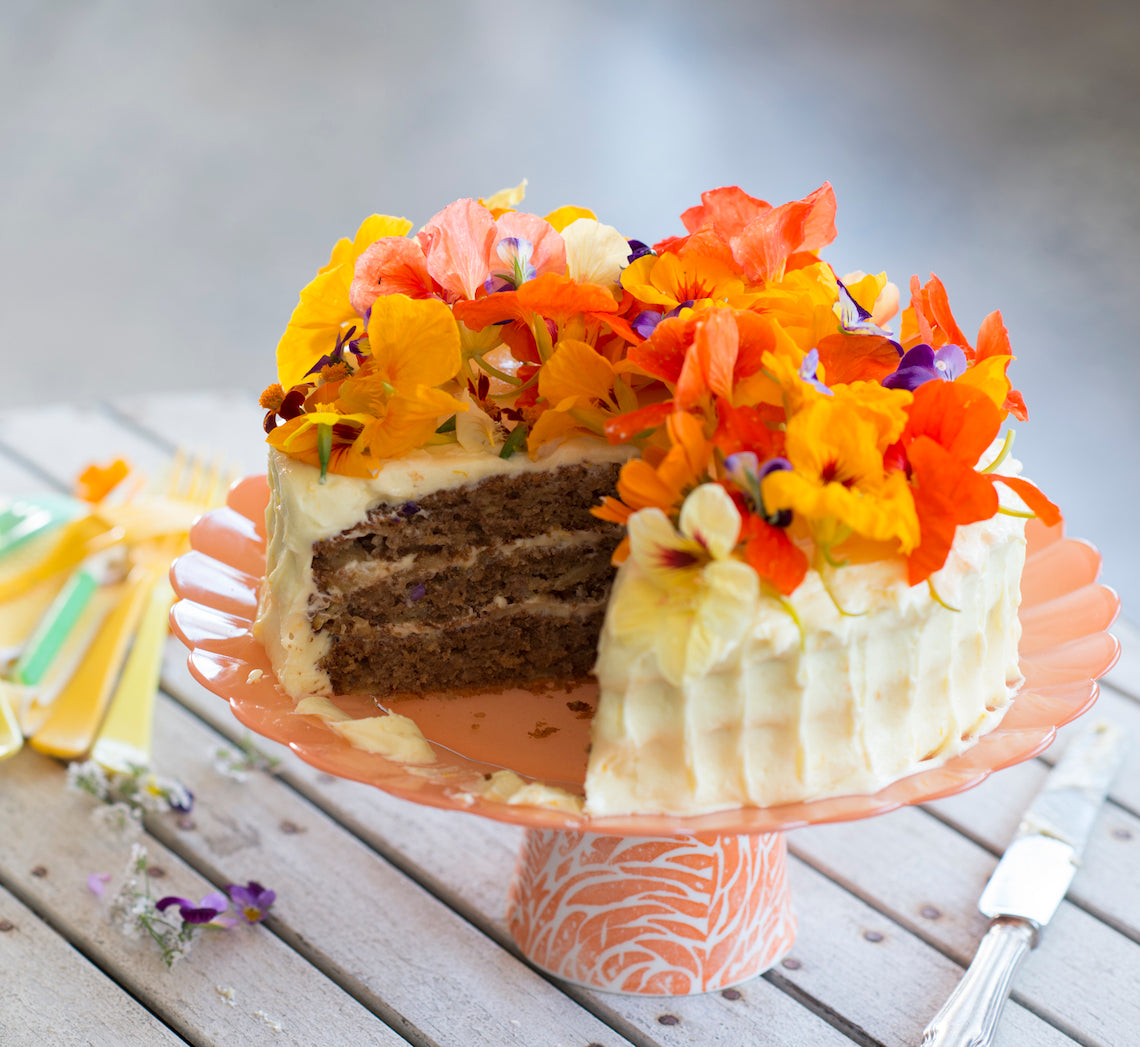 - Bake in preheated oven for 45-50 minutes or until moist crumbs cling to a skewer inserted in the centre. Remove from the oven and cool in tin on a wire rack (this will take about 1 hour).