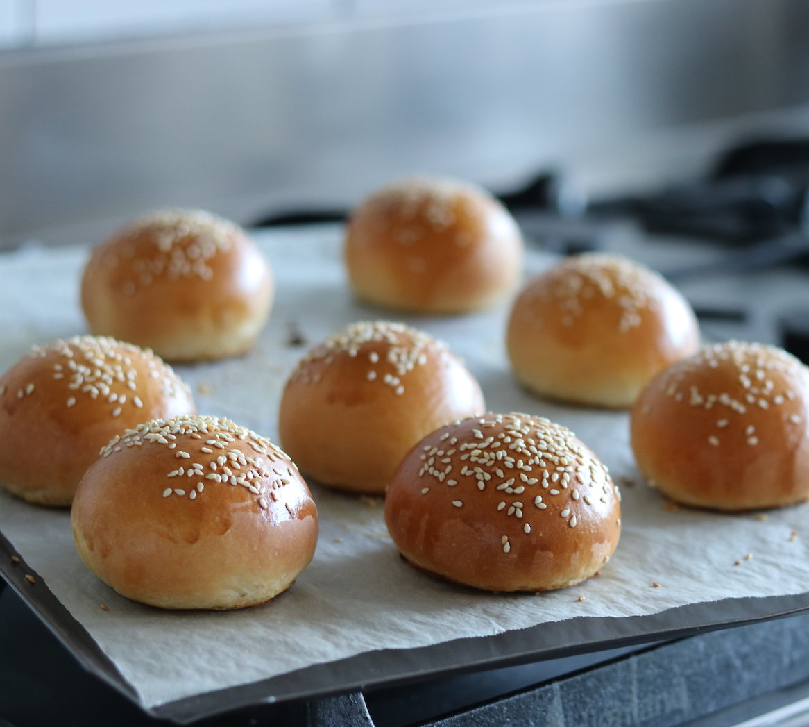 Brush the rolls with the egg wash to glaze, sprinkle with sesame or poppy seeds and then bake in preheated oven for 25-30 minutes, swapping the trays halfway through baking, or until golden and sound hollow when tapped on the base. Transfer to a wire rack to cool.