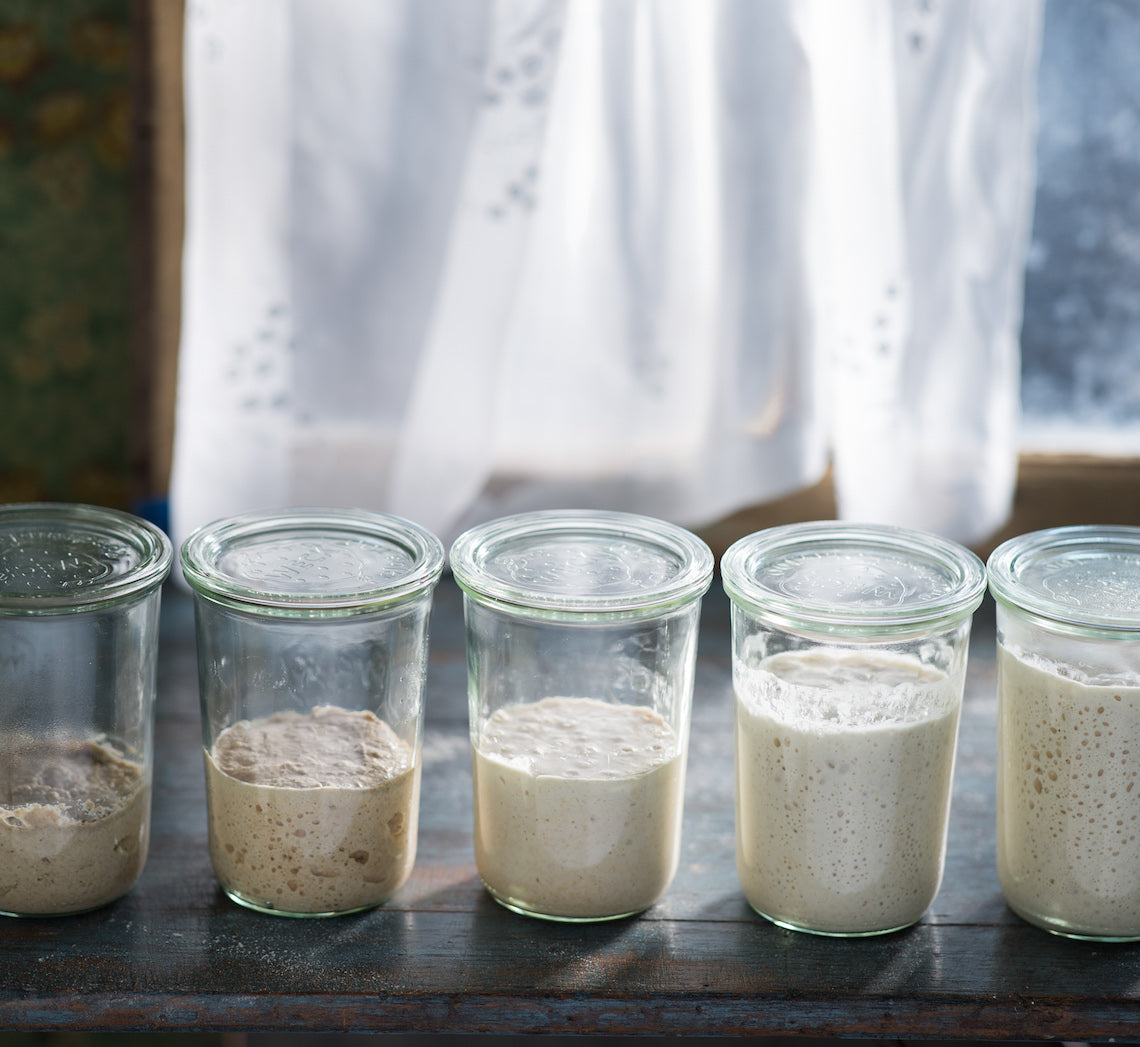 #4. A sourdough starter can be mixed and kept in a non-reactive container such as a glass jar. Look for one that has straight sides and a reasonable sized mouth to make mixing easy. This starter recipe will need a jar that has a capacity of at least 1 litre (4 cups) and, before making your starter, ensure that it is very clean and dry. It’s a good idea to note the weight of your jar so that it is easy to calculate how much sourdough starter you need to remove and discard every time you feed it.