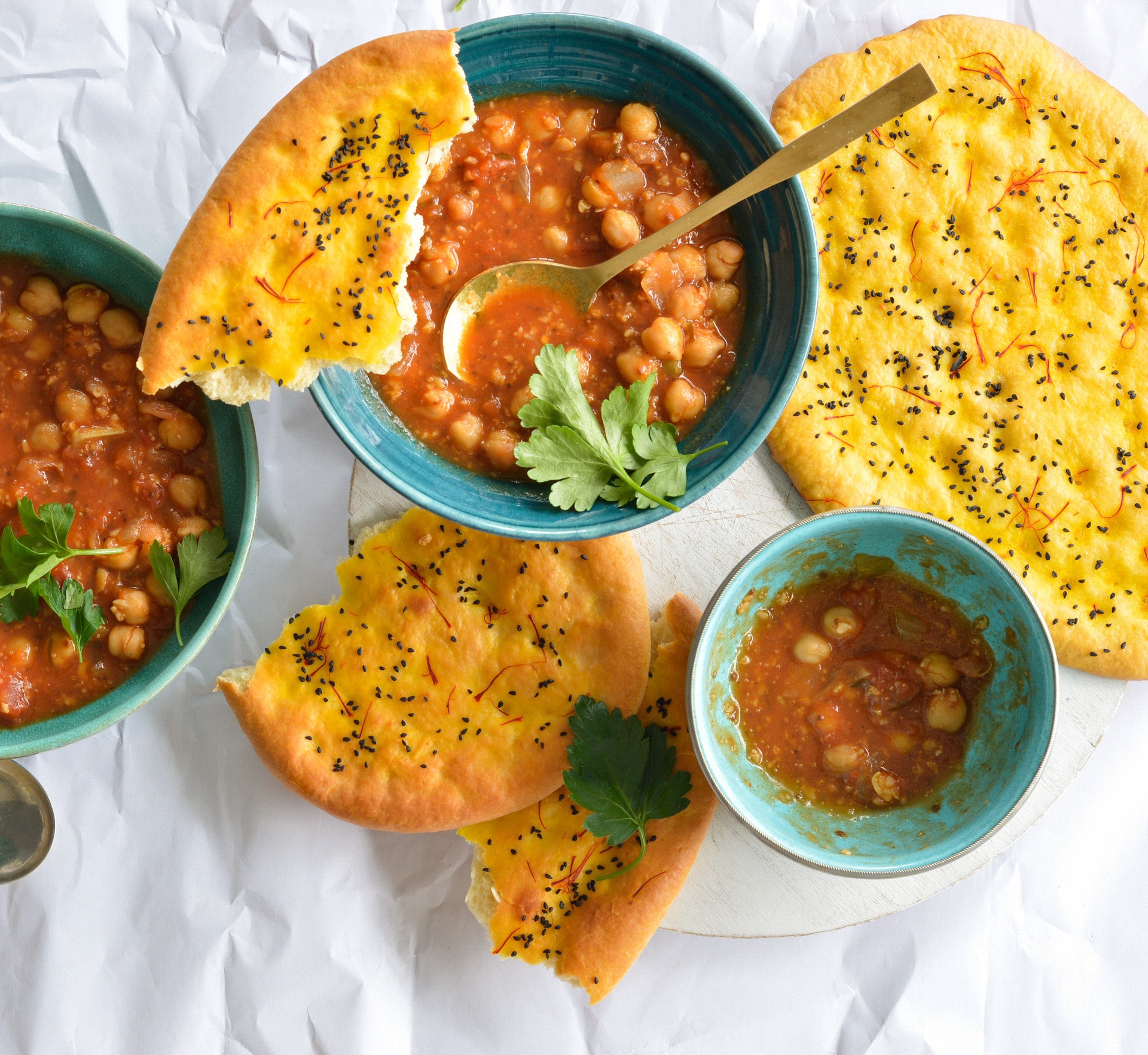 Similar to Indian Naan, just lighter and flakier (and in my opinion yummier), taftan is a hearth-baked flatbread from Persia and Pakistan. It is often flavoured with saffron – as this one is – which gives it a striking golden hue and alluring flavour perfect to serve alongside curries and soups (although don’t discount just nibbling it on its own).