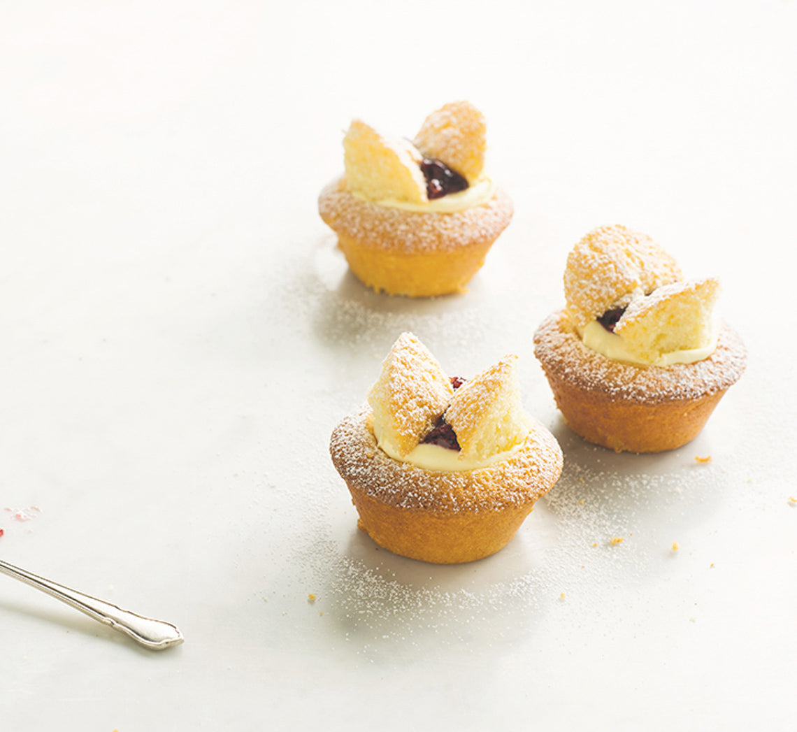 Individual Lemon & Blueberry Cheesecakes – Line a 12-hole 80ml (⅓ cup) capacity muffin tin with paper cases. Divide the biscuit base, cream cheese mixture and blueberries evenly among the cases. Bake at 160°C for 30 minutes. Cool as per the recipe, then chill in the fridge for at least 1 hour before removing the paper cases and serving.
