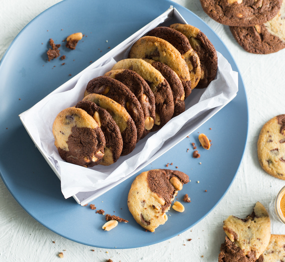 - Bake in for 12 minutes or until the chocolate chip half is golden and cooked through and the brownie halves are still slightly soft to touch. Cool on the tray. Repeat with the remaining cookie doughs in two more batches.