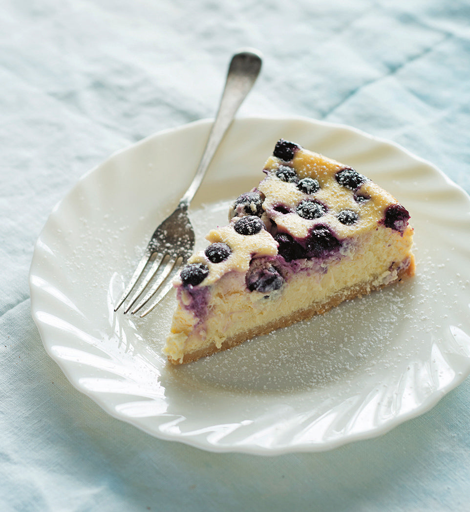 Bringing together sweet blueberries and sour lemons, this simple cheesecake is light but luscious. It's the perfect end to a lazy summer meal.