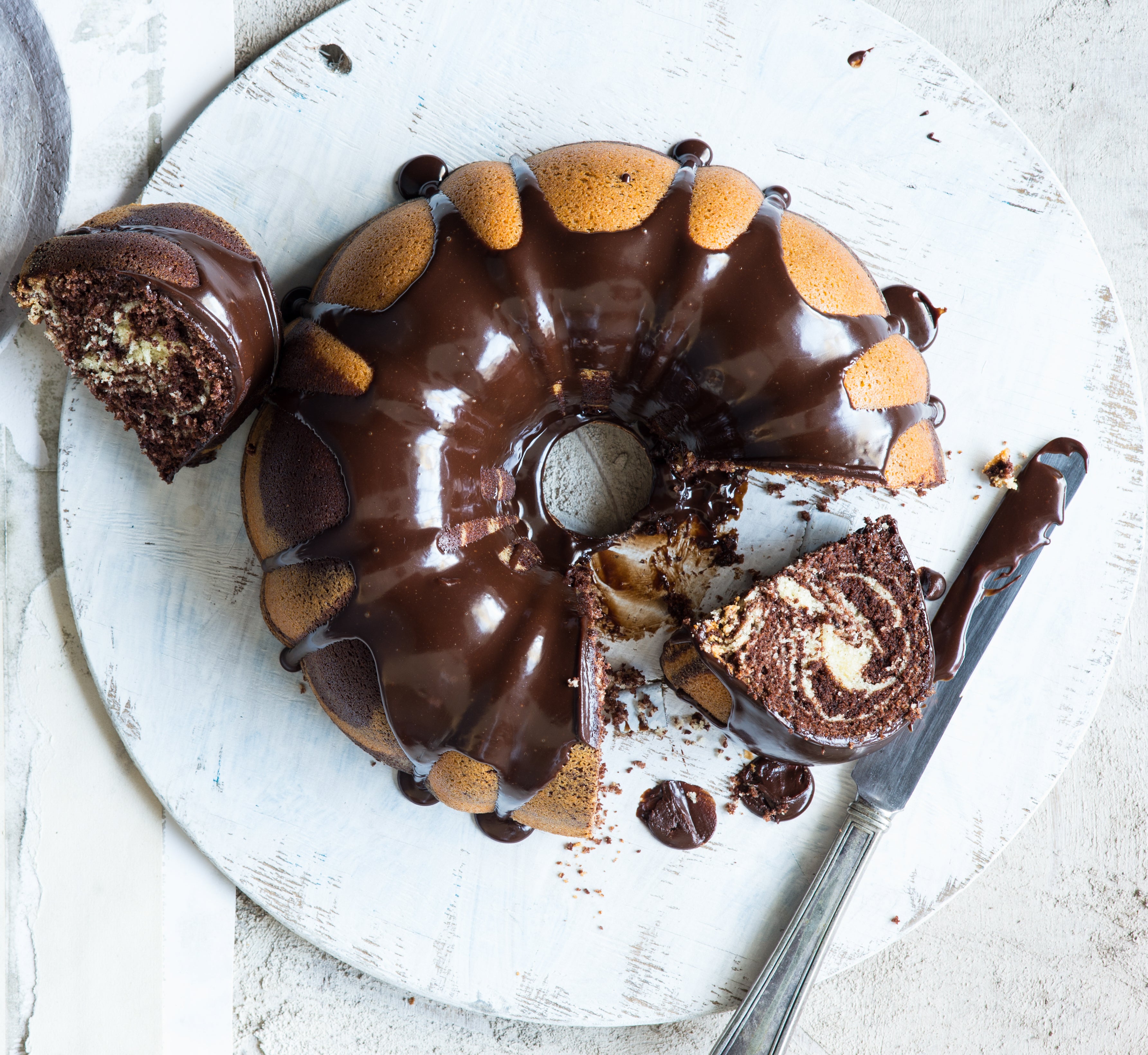 - Put the flour, sugar, butter, eggs, water and vanilla in a large mixing bowl and use an electric mixer to beat on low speed until combined. Increase the speed to high and beat for 3-4 minutes or until paler in colour and silky smooth in texture. Transfer 2 cups (about 500g) of the cake mixture to a separate bowl. Add the cocoa mixture and use a spatula to mix until evenly combined.